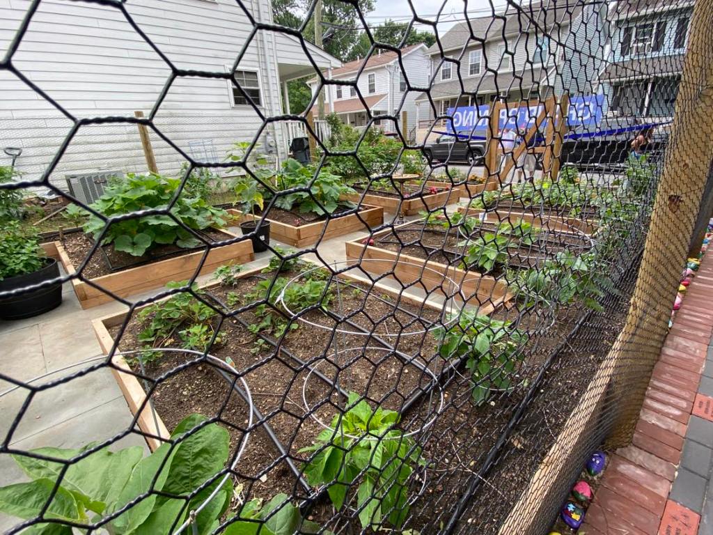 Saturday’s Garden of Grace Celebration and unveiling was attended by about 100 Poplar Street neighbors. Many fruits and vegetables are now growing in the spacious garden beds, including tomatoes, peppers, squash, zucchini, collards, Brussels sprouts, radishes, spinach, eggplant, watermelons and strawberries.